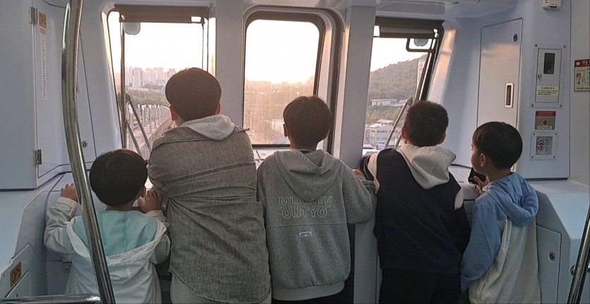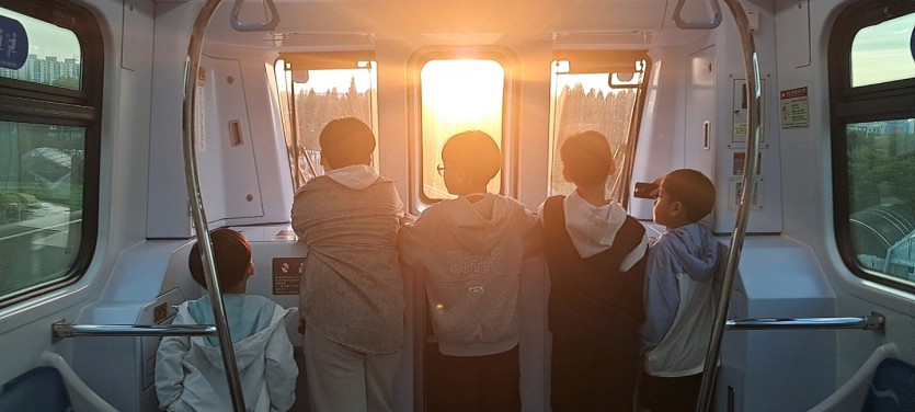 막내부터 형들까지 모두 전철 끝에 가서 해지는 것을 보고자 기다리고 있습니다.