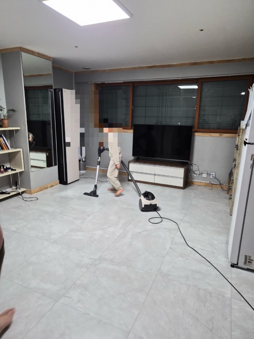 아동은 깨끗하게 청소해야 기분이 좋아진다며 청소기와를 돌린 후 밀대를 꺼내 바닦을 닦으며 청소를 마칩니다.