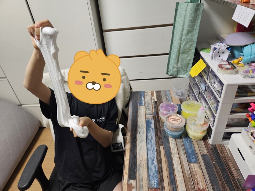 소원했던 선물을 받아 행복하다며 열심히 꾸며주는 이0서 아동.