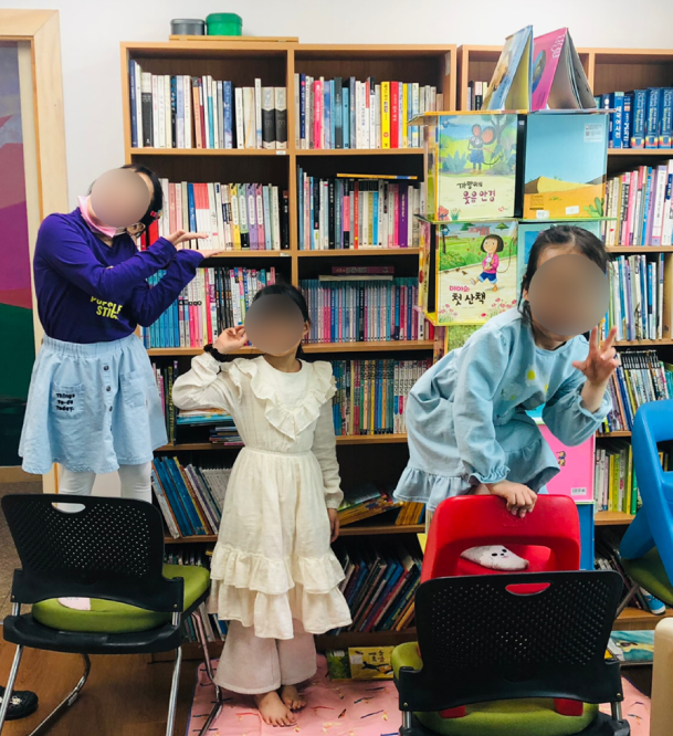 조용히 놀이를 하는 아동들을 보니 책을 보기는 하나, 다른 용도로 사용하고 있었습니다.